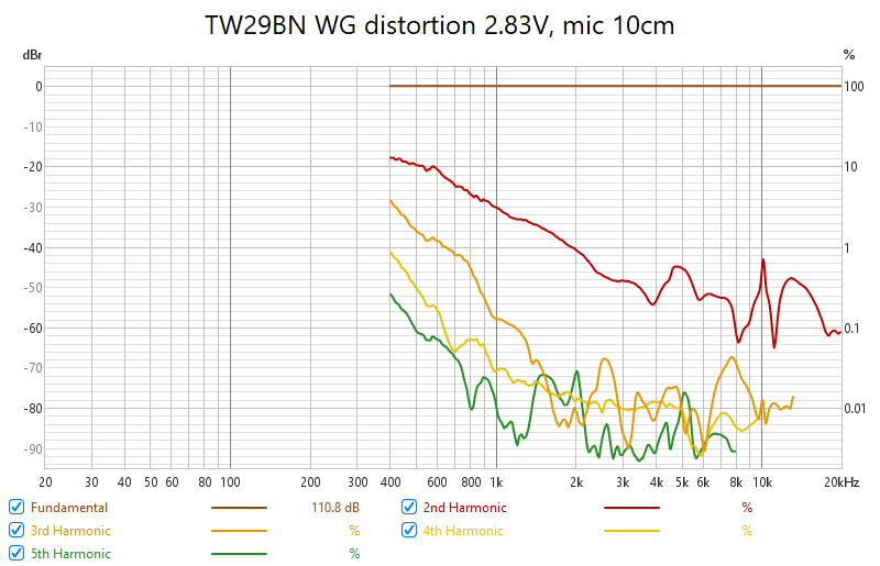 TW29BN and Jantzen WG is well proven combo, on and off axis responses are nicely linear and the distortion is as low as it can be and proves the capability of this combo to be crossed over low. Well, it is good to have this capability, though I tend not to push the M-T crossovers low as it hardly brings any good to the sound.