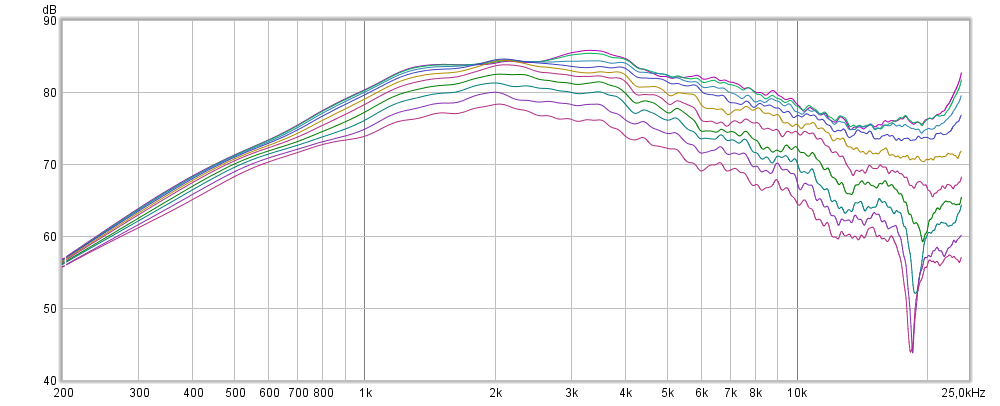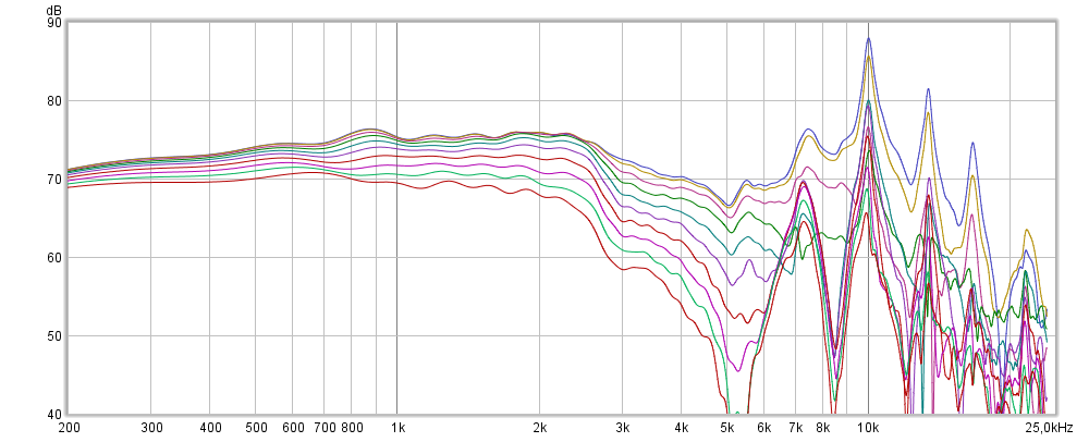 Measured horizontal responses of individual drivers are following (all measured from design axis, mic distance 1m from baffle).