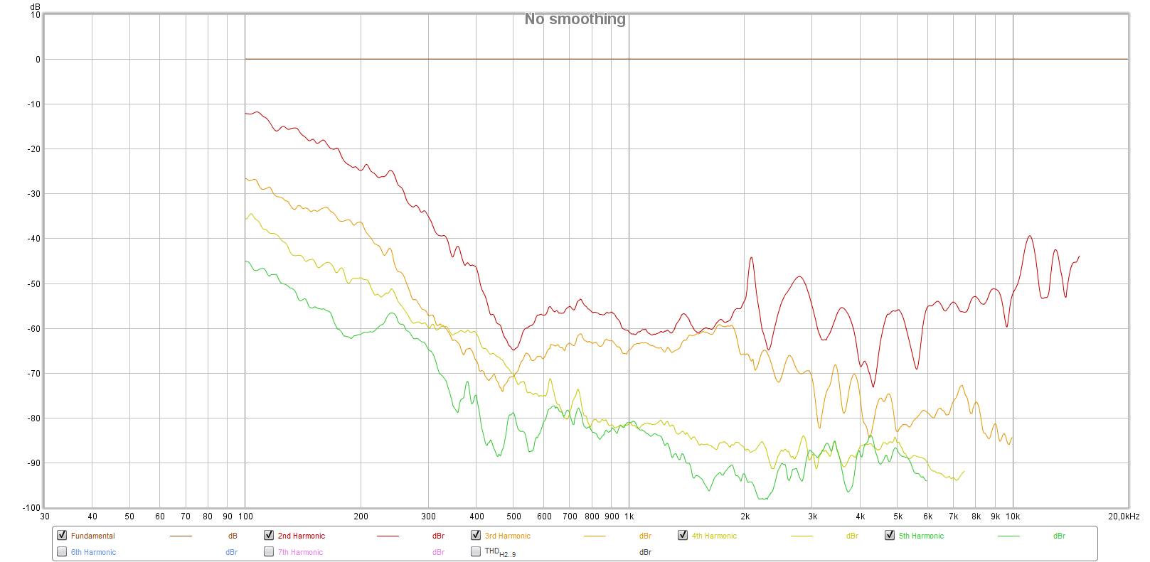 Woofer: distortion measurement shows quite unimpressive results, I would expect lower distortion in are below 100Hz.