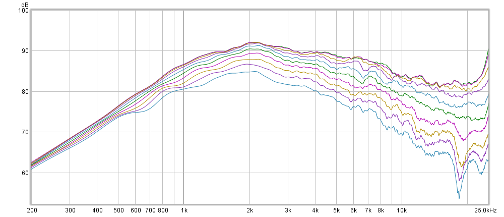 The cabinet had 15-18l net volume, and larger facets around tweeter which shown to be beneficial for the linearity of tweeter on-axis and off-axis performance.